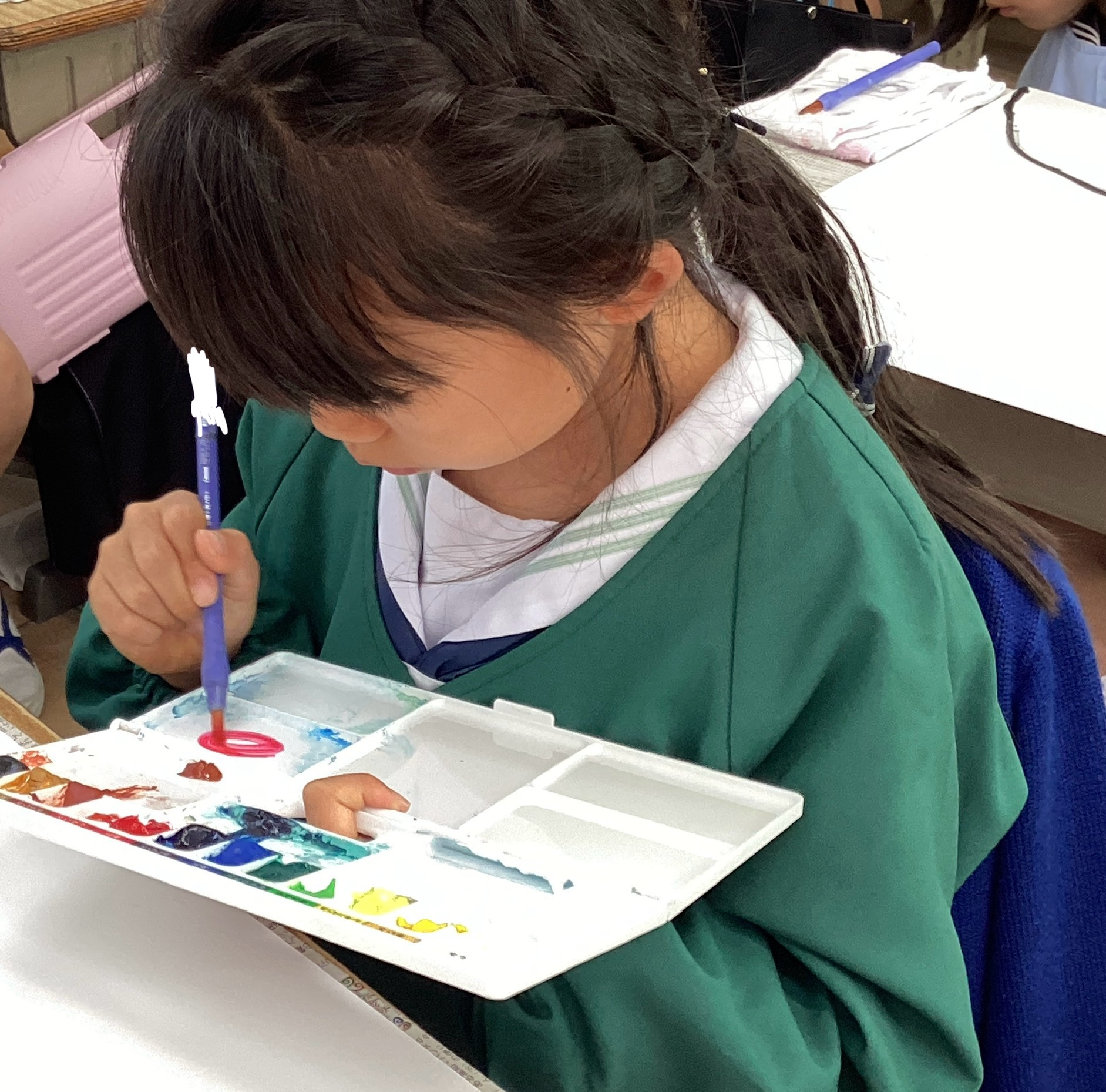 聞いたお話をもとにしてイメージを膨らませて、絵に表現しました。