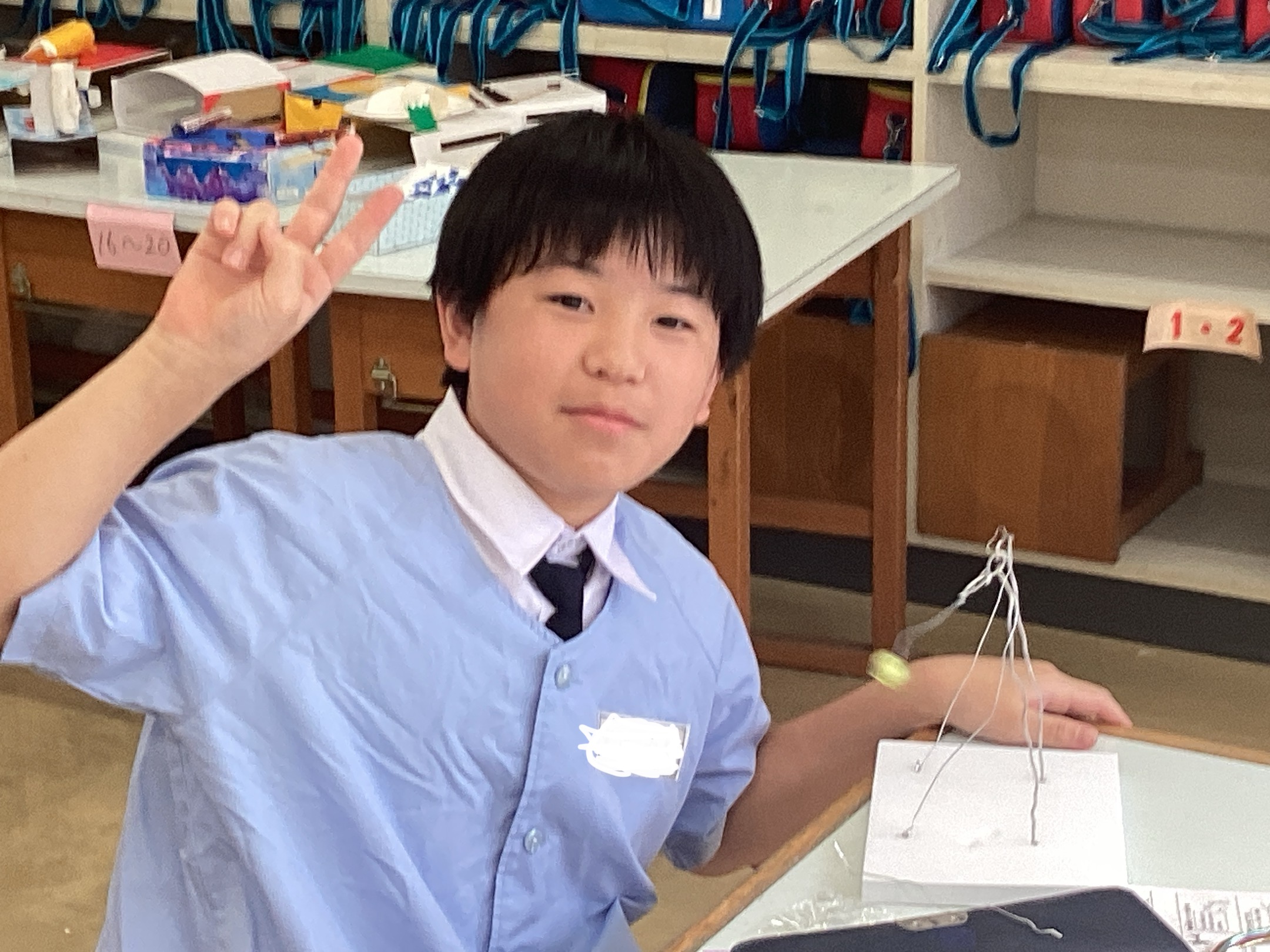 針金を曲げたり、ねじったり工夫して作品を作っています。 針金でブランコを作って…