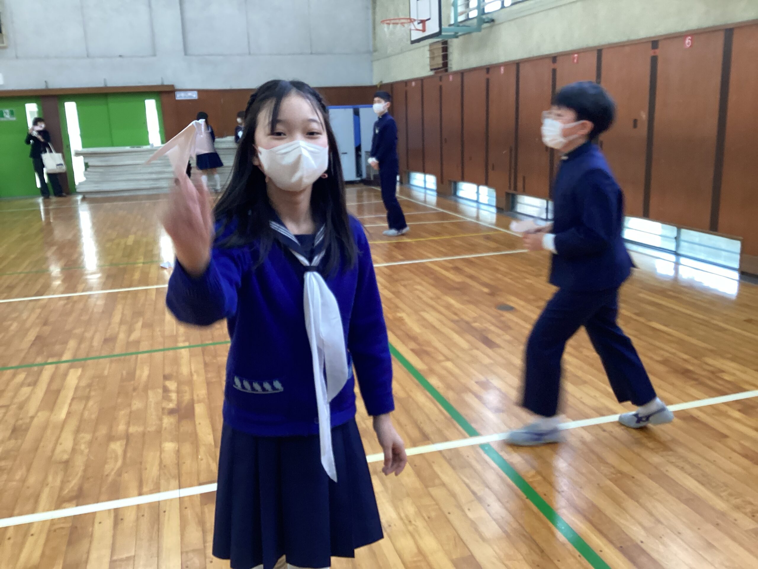体育ではバスケットボールをしています。 シュートが決まるたびに歓声が上がってい…