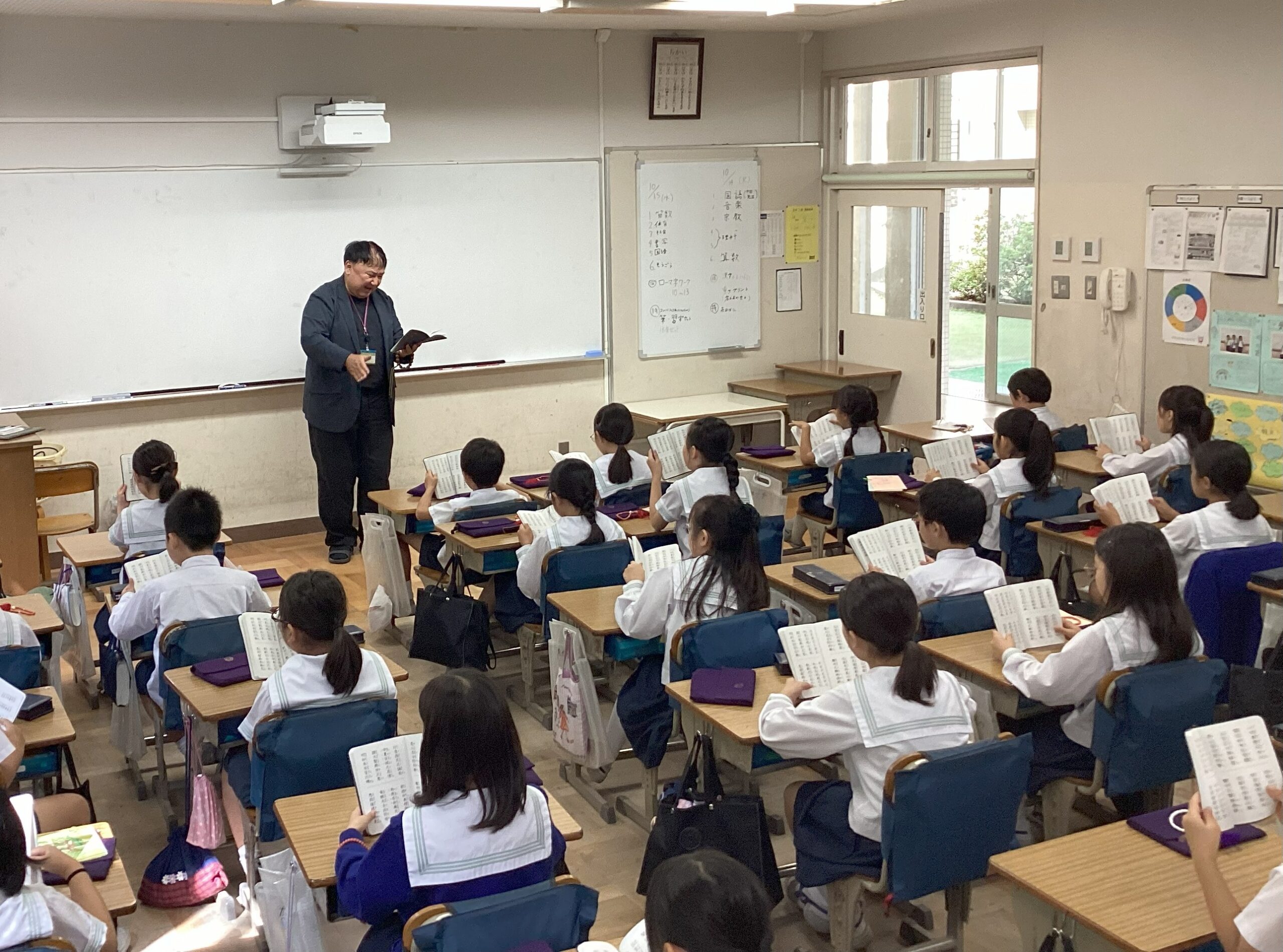 宗教の時間に、「正信偈」のおつとめの練習をしました。「3年生なので、大丈夫ですよ…
