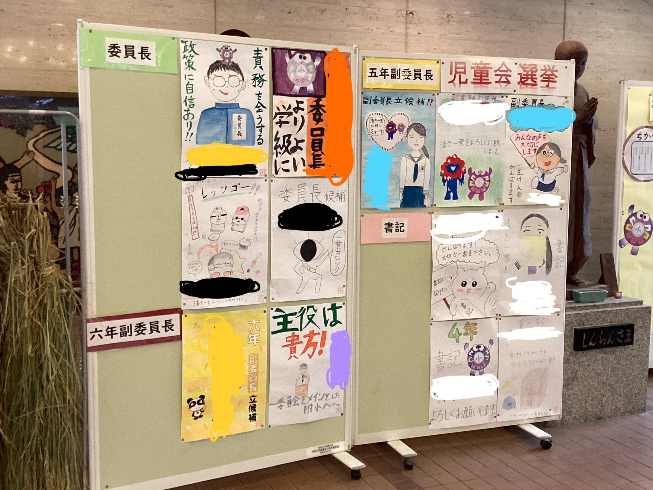 後期児童会選挙が行われます。 児童会選挙に向けて立候補者のポスターが正面玄関に…