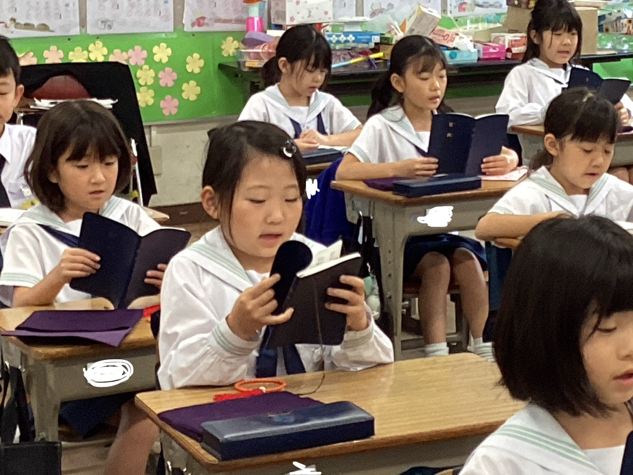 宗教の時間に、「正信偈」のおつとめの練習をしました。「3年生なので、大丈夫ですよ…