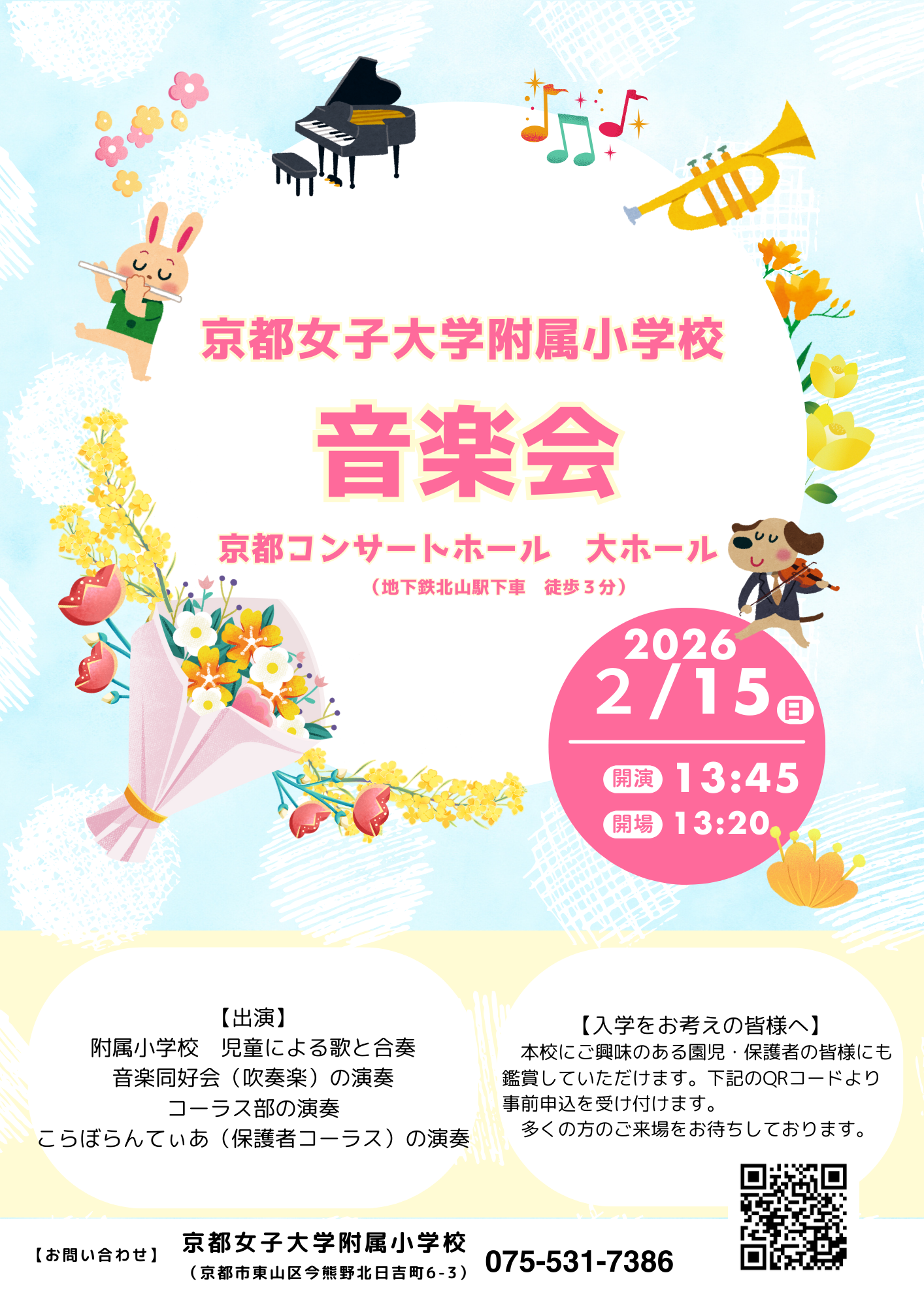 【附小音楽会のお知らせ】 日時:2026年2月15日(日)13時20分開…