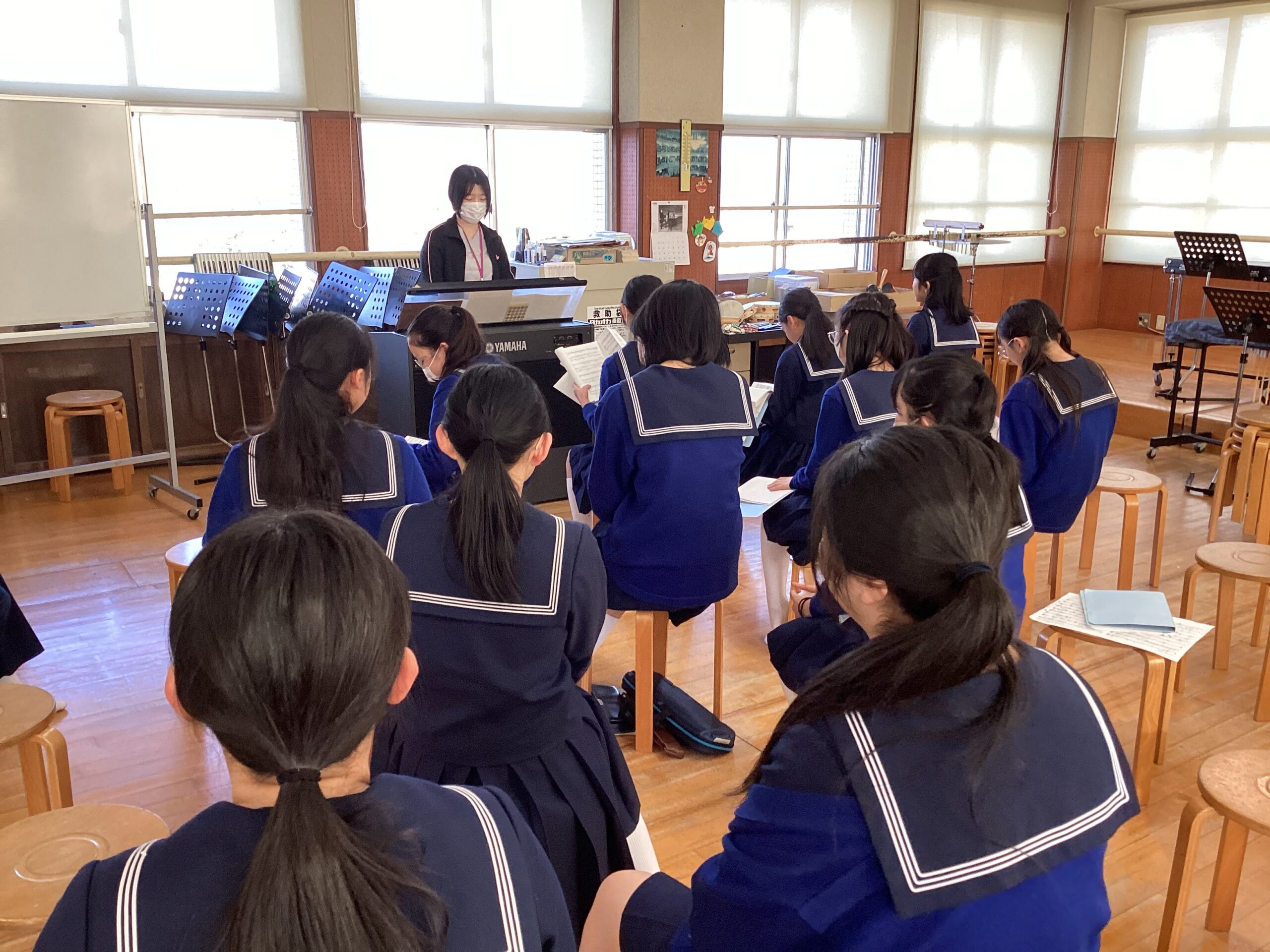 合唱「正解」の練習をしています。少ない人数ではありますが、互いのパートを意識して…