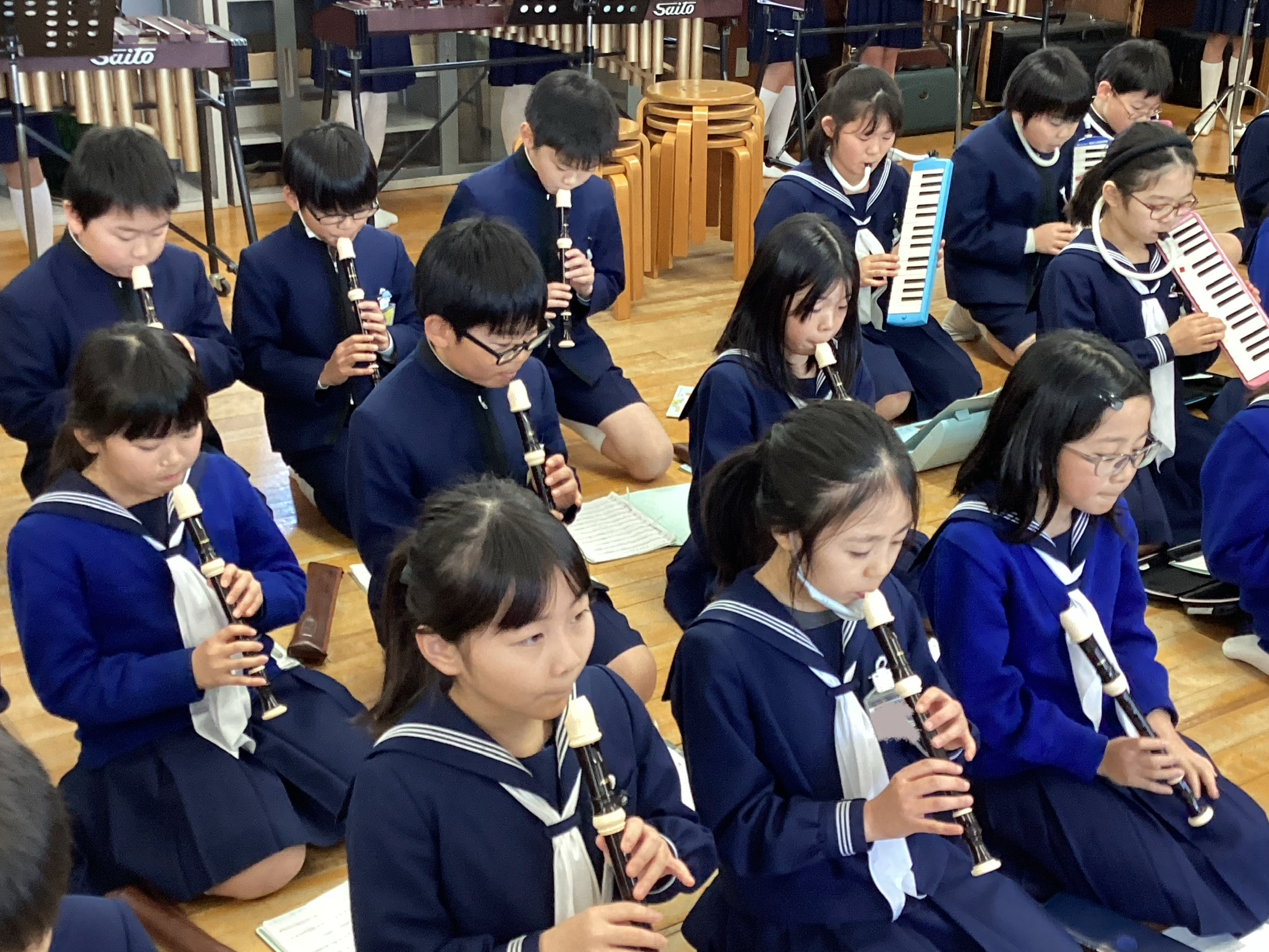 音楽会に向けて学年練習をしました。 5時間目には合奏、6時間目には合唱の練習を…