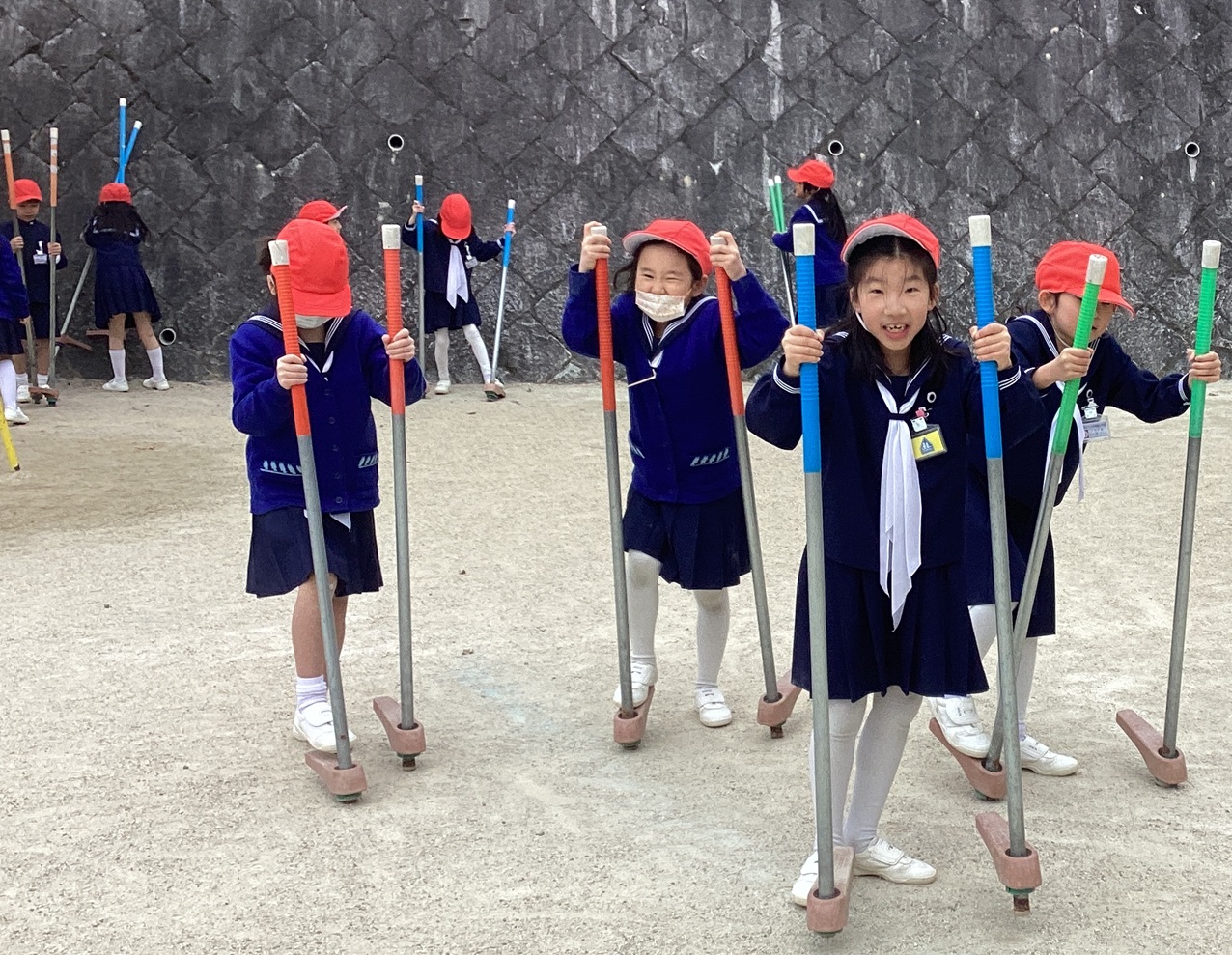 1年生では、生活科の授業で昔遊びをしています。竹馬、竹トンボ、あやとり、剣玉な…