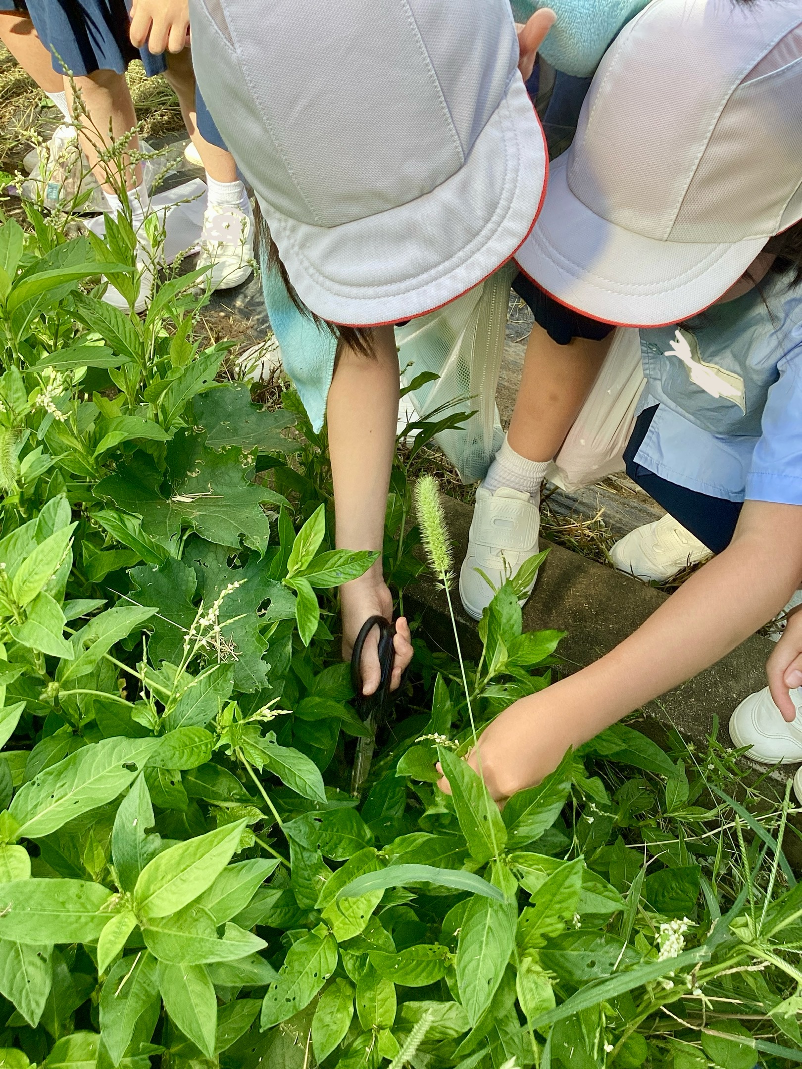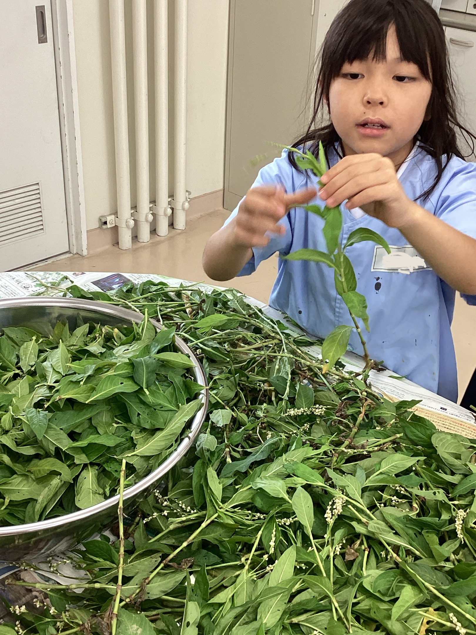 春に第二グラウンドに植えた藍を収穫した後、布を染めました。