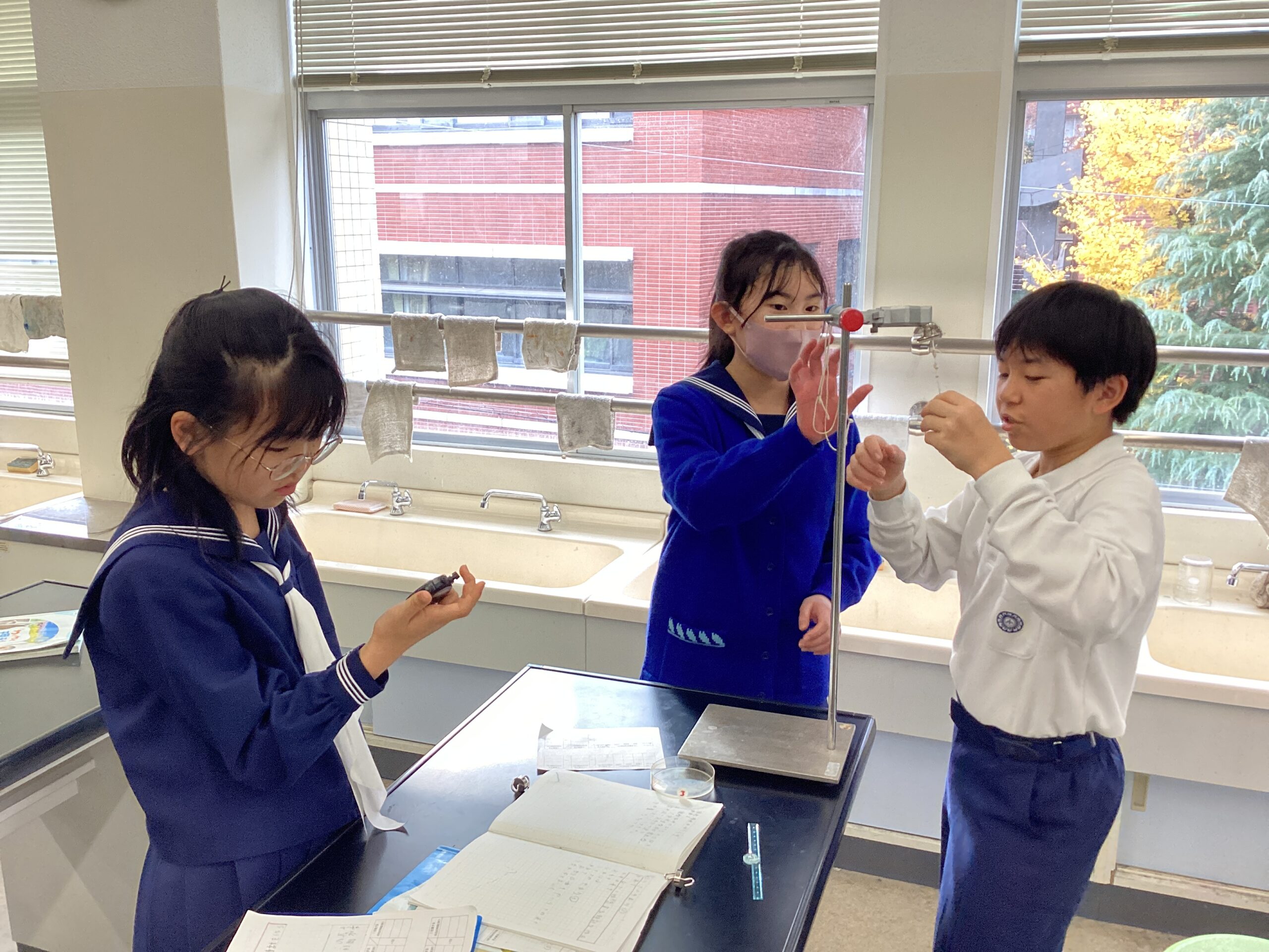 おもりの重さやふりこの長さと1往復する時間関係を調べました。