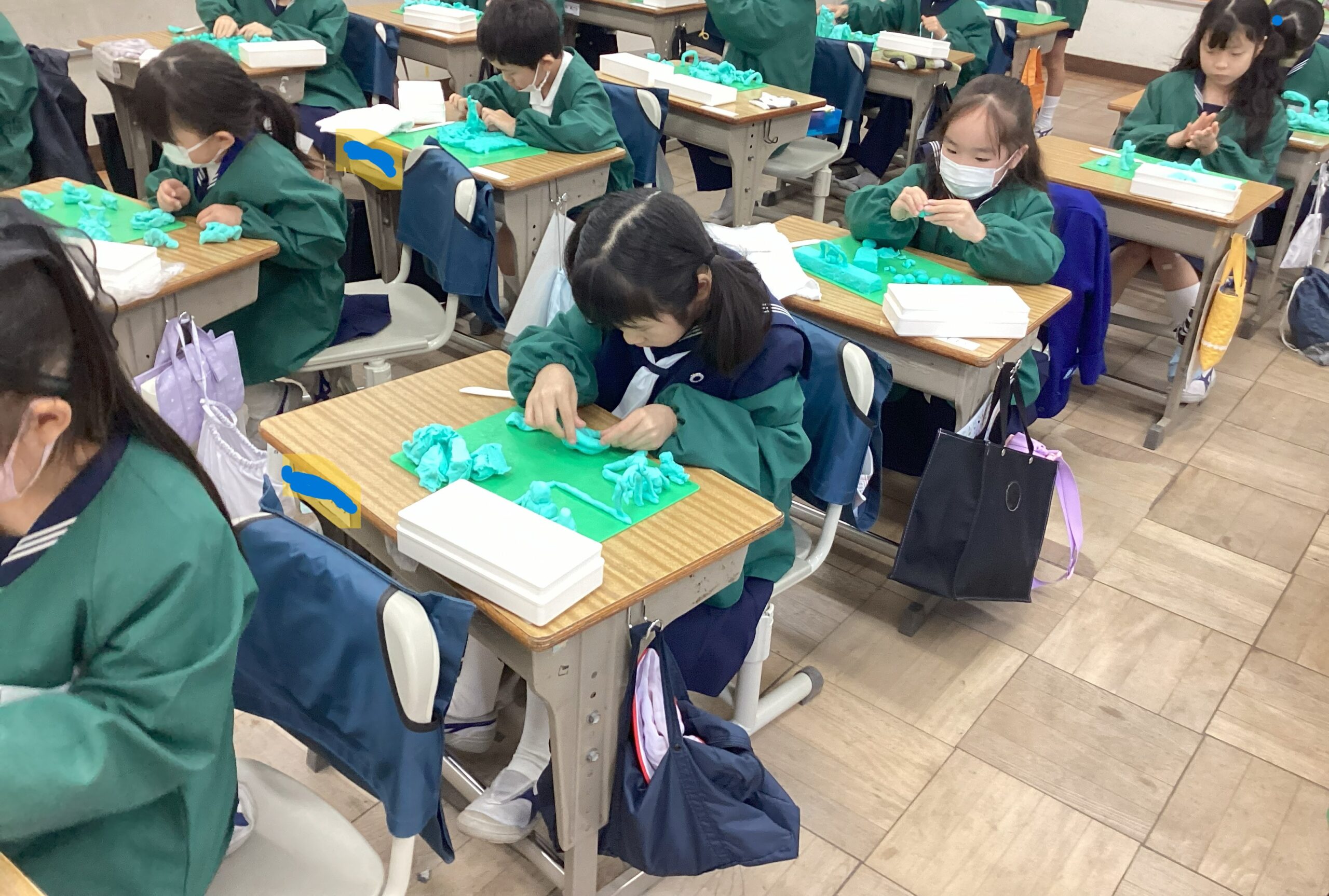 図工の時間に、ねん土を使った学習をしました。テーマは「動物園」。ウサギやペンギン、恐竜など子ども達は思い思いの動物をねん土で作っていました。二学期最後の図工の時間、とても楽しそうな雰囲気で終えることができました。