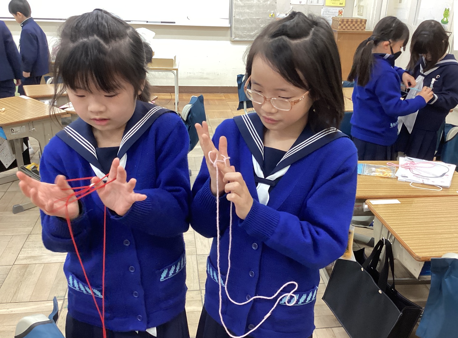1年生では、生活科の授業で昔遊びをしています。竹馬、竹トンボ、あやとり、剣玉など、子どもたちにとってあまり馴染みのない遊びもあったようです。遊び方を友達に教えてもらったり、何度も挑戦したりしながら、楽しむ姿が見られました。