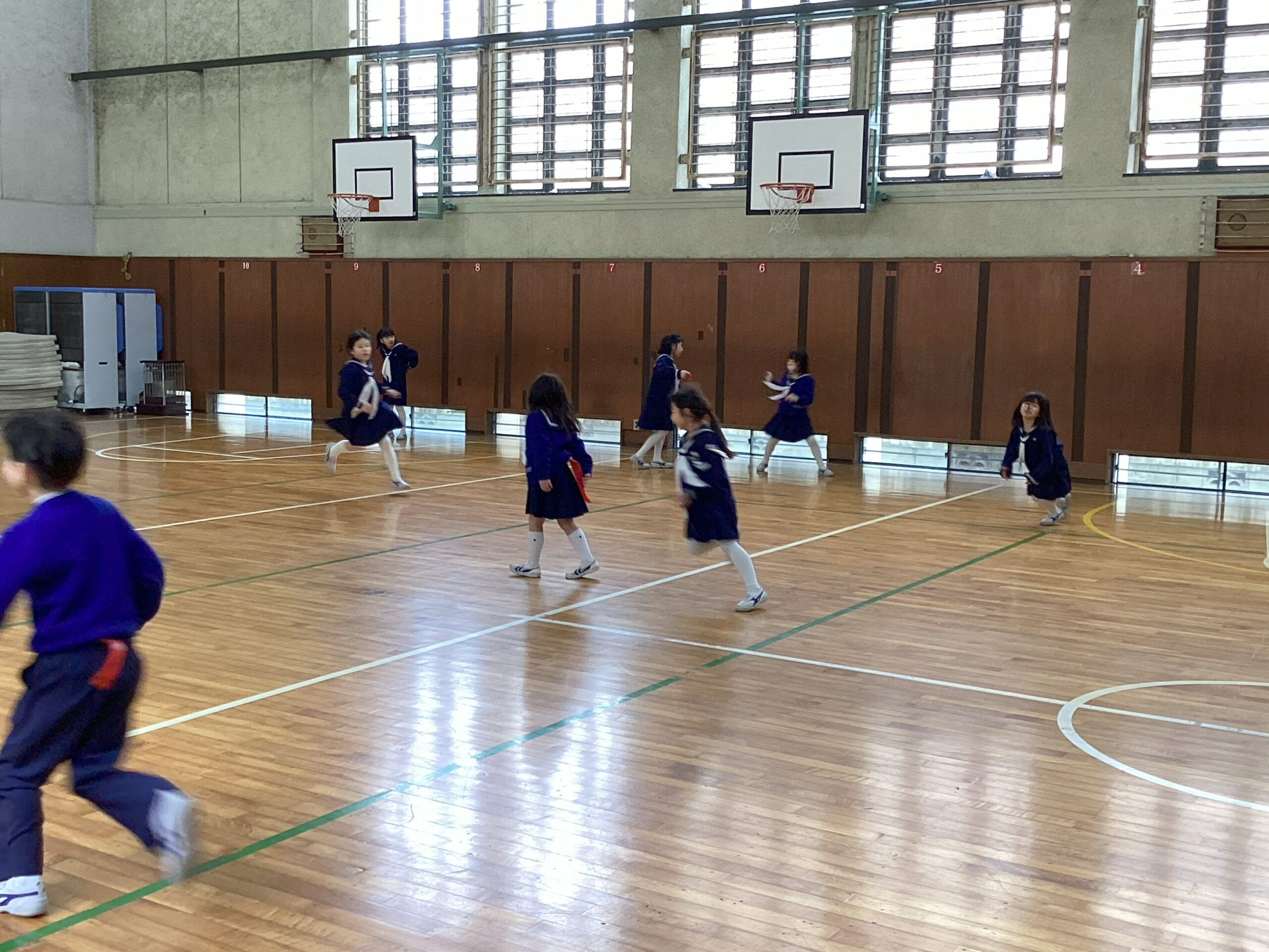 今日の休み時間に、体育委員会の取り組みでしっぽとりをしました。赤チームと黄チームに分かれてしっぽを取り合いました。しっぽを取られないように上手に逃げたり、素早く相手のしっぽを取ったりとても楽しく盛り上がっていました。