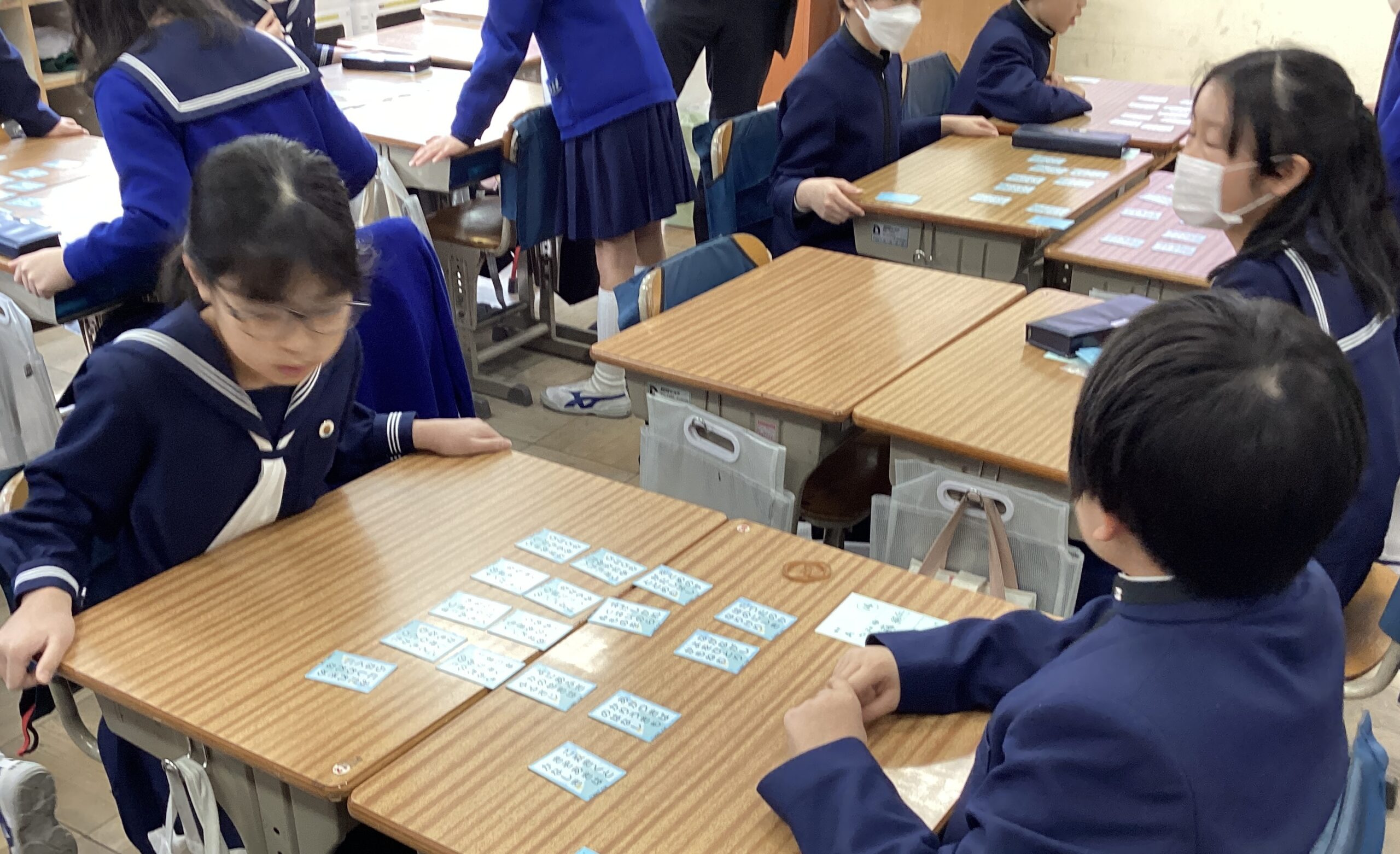 1~6年生が自分の得意とする色札を選び、学年に関係なく、札を取り合いました。