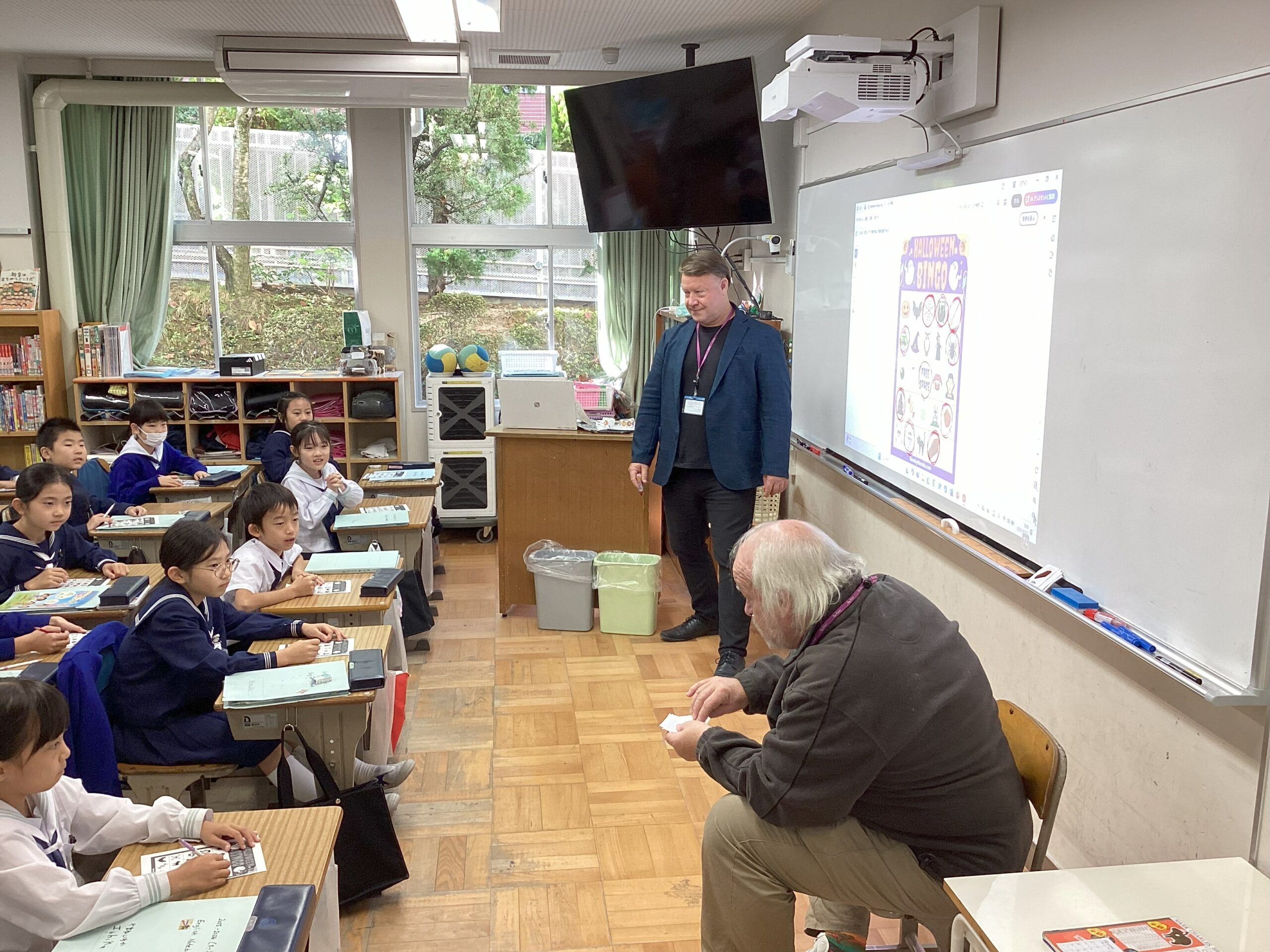 外国語の時間にハロウィンの英語を使ったビンゴゲームをしました。先生が次にどのカー…