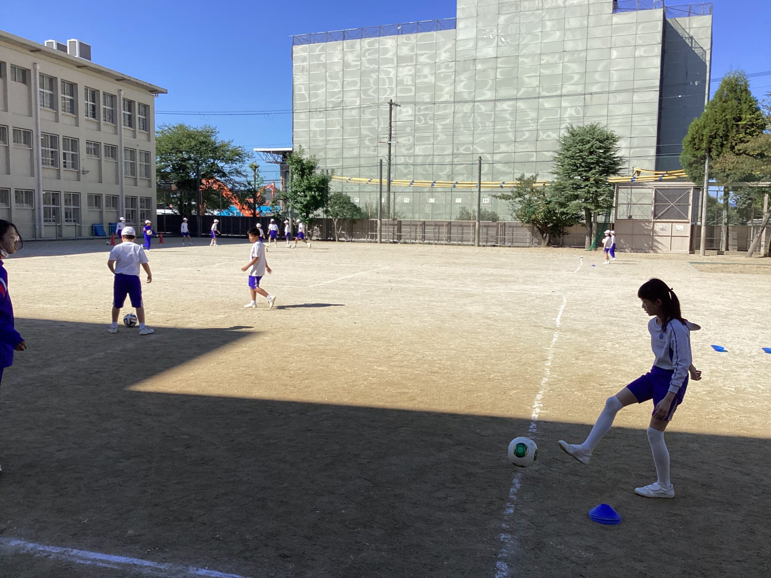 体育でサッカーに取り組んでいます。今回はオフェンスとディフェンスに分かれて練習を…